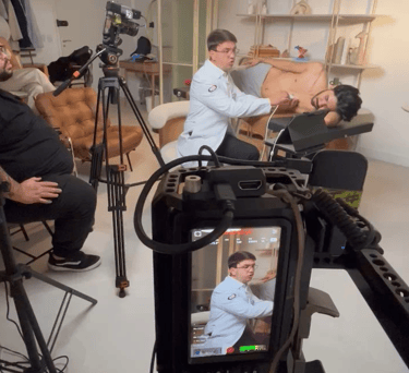 Tudo pronto para você: roteiro definido, teleprompter, câmeras, luzes e toda a expertise da nossa equipe, que já produziu milhares de campanhas, comerciais e conteúdos digitais com qualidade de cinema.
